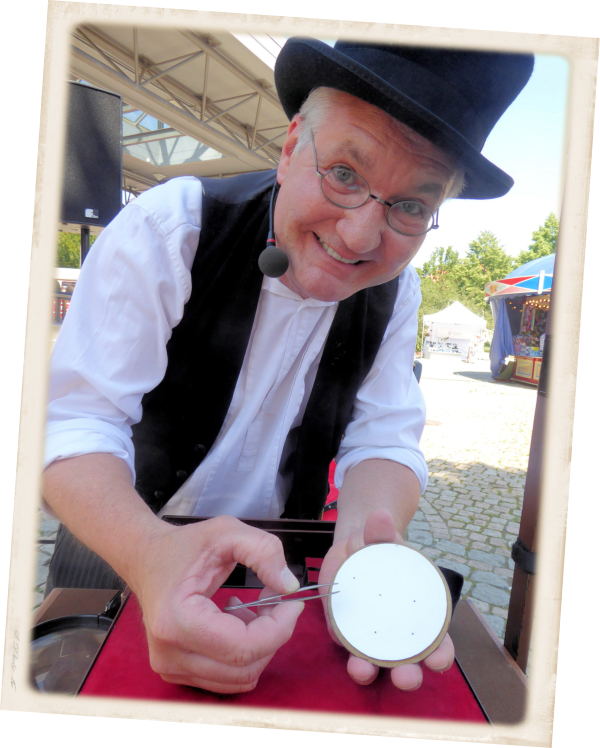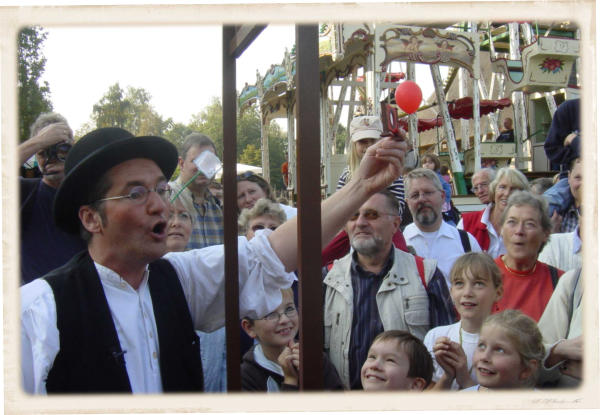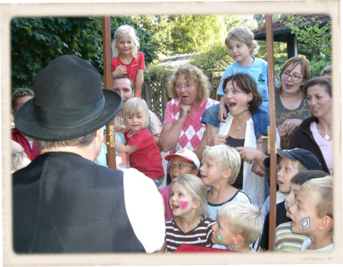 DerFlohzirkusistfürKinderundErwachsenegeeignet!Die Präsentation kann an jede Altersgruppe angepasstwerden.Das Publikum wird in die Vorführung mit einbezogen.Die Darbietung findet an einem festen Standort statt.Die Spielzeit einer einzelnen Zirkusshow kann flexibel an die Vorführbedingungen angepasst werden. In der Regel dauert eine Darbietung ca. 20 Minuten.Der Zirkus ist sofort wieder vorführbereit, so dass mehrere Shows unmittelbar hintereinander stattfinden können. EristgeeignetfürVeranstaltungenjederArt.Es kommen weder Tiere noch Menschen in Gefahr, dennFreddyistein„virtueller“Floh!Bei dem Floh handelt es sich um die seltene Art des "Pulex invisibilis", einer "virtuellen Spezies". Das heißt, der Zuschauer sieht immer die Aktion des kleinen"Artisten".DerFlohselberentstehtimKopf!Es handelt sich um ein unterhaltsames Spiel mit Phantasie, Fingerfertigkeit und feinmechanischer Tricktechnik.Bei Regen brauche ich eine überdachte Ausweichmöglichkeitumspielenzukönnen!